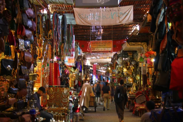 Marraech is avibrant hub for traditionnal Moroccan crafts, famous for its bustling markets filled with handcrafted leather goods (babouches, bags), metal lanterns, colorful Zellige tiles, hand-painted ceramics, rich textiles (rugs, kaftans, cactus silk), and woodwork, offering authentic cultural experiences and unique souvenirs that showcase deep-rooted artistry in pottery, weaving, and metalwork.