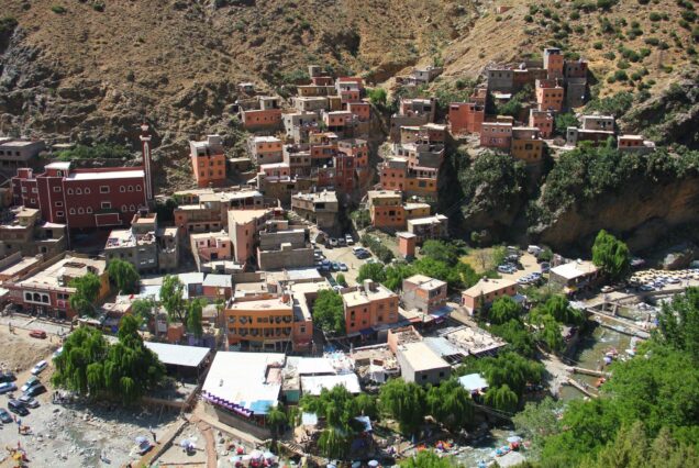 The Ourika valley, the fertile plain of Haouz. green valley in the foothills of Morocco’s High Atlas Mountains, about 30-40 km southeast of Marrakech Ourika is famous for its pottery, Berber villages, waterfalls (especially at Setti-Fatma)